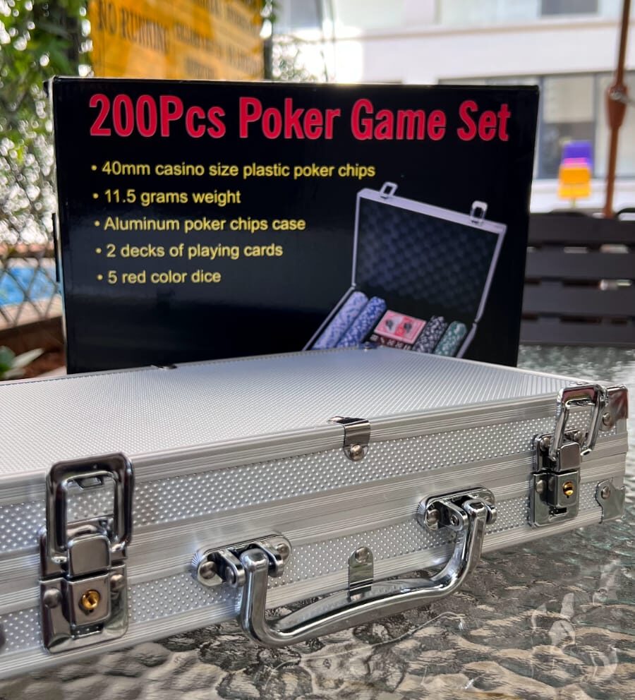 This gorgeous poker set comes complete with 5 Dice, 100/200/300 Chips, & 2 decks of playing cards, all packaged in a sleek aluminium case.