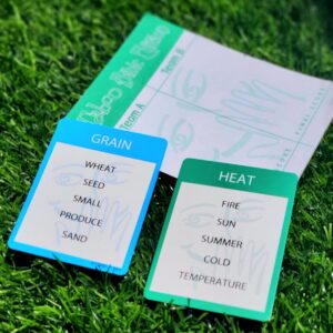 To play: Players on two teams use verbal clues to get teammates to guess a word. The word itself or any of the forbidden words listed on the card cannot be used.