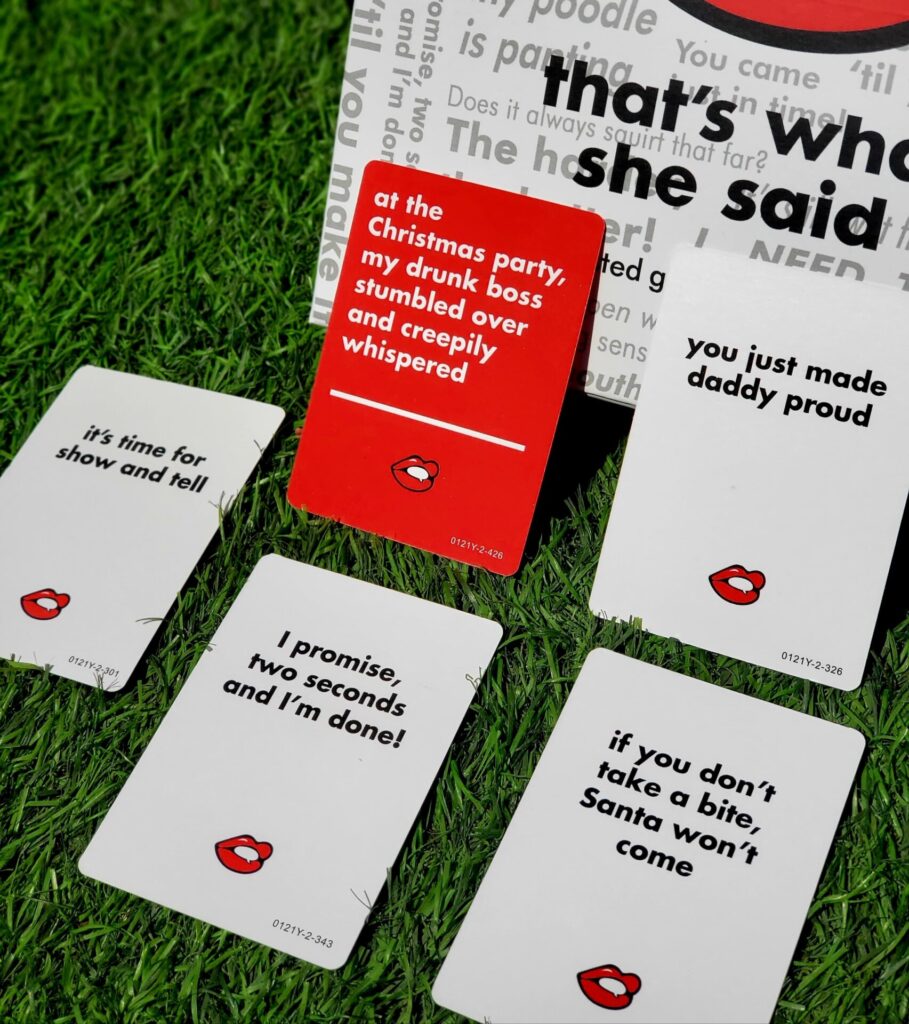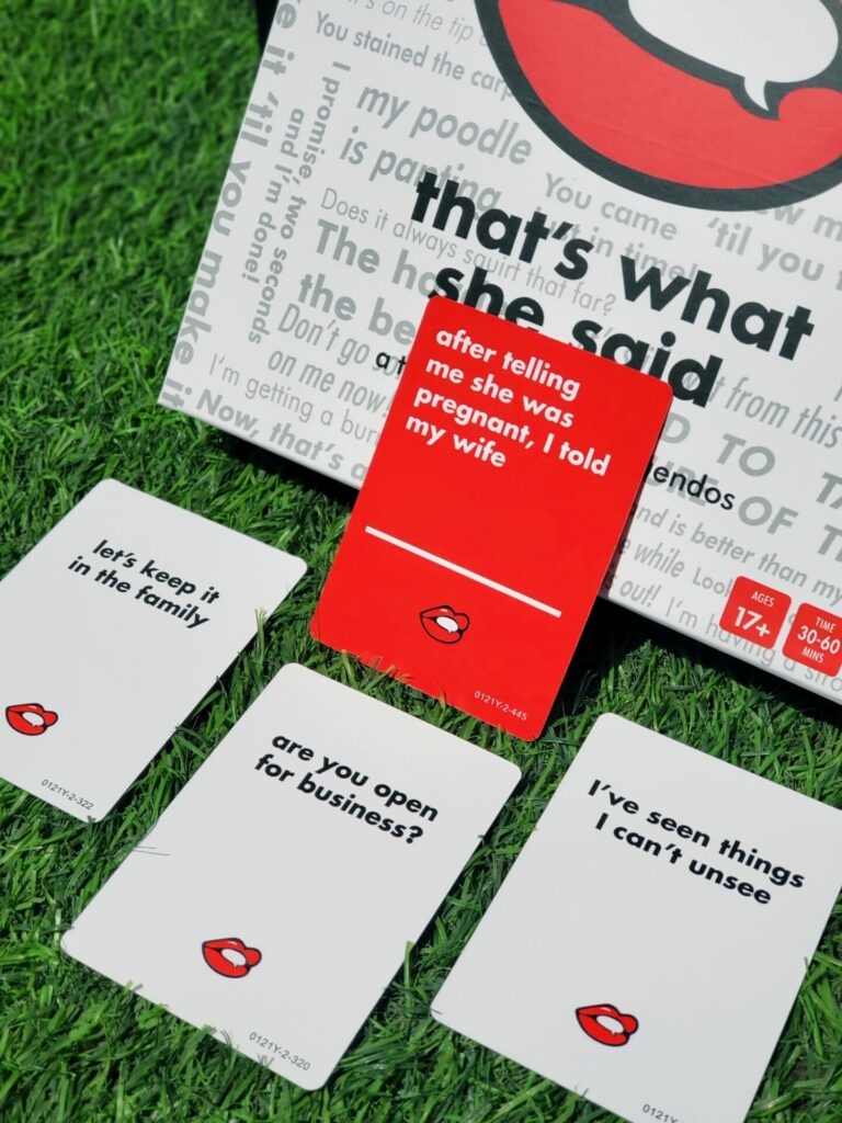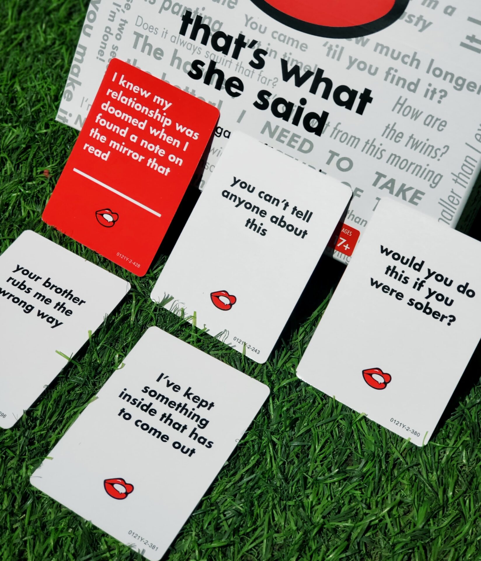 That’s What She Said isn’t just a game—it’s a full-blown laughter storm. It’s the kind of game that takes your party from “fun” to “unforgettably outrageous” in minutes.